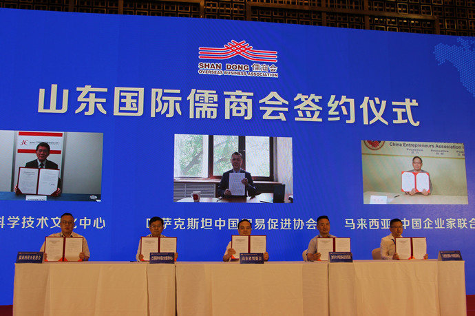 會議期間,山東省貿促會(山東國際商會)與哈薩克斯坦、馬來西亞、巴基斯坦、烏茲別克斯坦、日本、柬埔寨、泰國、西班牙、加拿大等9國相關商協會、山東商會等機構正式簽署合作備忘錄,在所在國設立儒商會;會議發布境外儒商會對魯合作項目70余個,組織省內近200家企業參與對接,會前及會議現場,開展企業對接100余組,達成合作意向40余個。會后還將持續分國別開展專場項目對接活動。