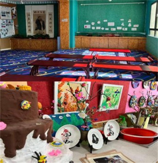 位于濟南市中區萬達商圈里的魏家莊黨群服務中心,是濟南市首批泉城文化驛站之一。2021年,魏家莊社區成立非遺傳承基地,由國家級非遺項目濟南皮影,省級非遺項目面塑、剪紙,另有布藝、串珠、古船修復、核雕、結藝、刻瓷、絲網花等民俗手藝人及團隊組成。每月固定開展非遺民俗體驗課程,包含不同項目,上述的親子學習課程就是其中一項。