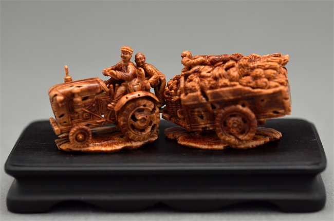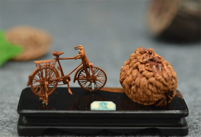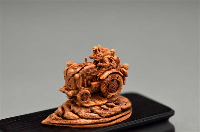 核桃紋理猶如指紋獨一無二,田洪波的核雕作品則隨桃核形狀而就,借紋用紋巧妙運用,實現了手、腦、核三位一體。他掌握多種雕刻門類手法于一身,作品栩栩如生,錨鏈等結構整條雕刻沒有任何粘結,充分體現了精益求精的工匠精神。(圖/文:宮英英)