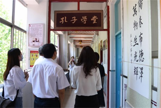 6月20—22日,邀請了尼山世界儒學中心(中國孔子基金會秘書處)的領導專家對區孔子學堂規范化建設暨爭創“中華優秀傳統文化進校園先行示范區”工作開展情況進行調研。目前,全區教體系統已獲批“孔子學堂”39所,實現了“孔子學堂”在全區所有中小學(含國辦幼兒園)的全覆蓋。