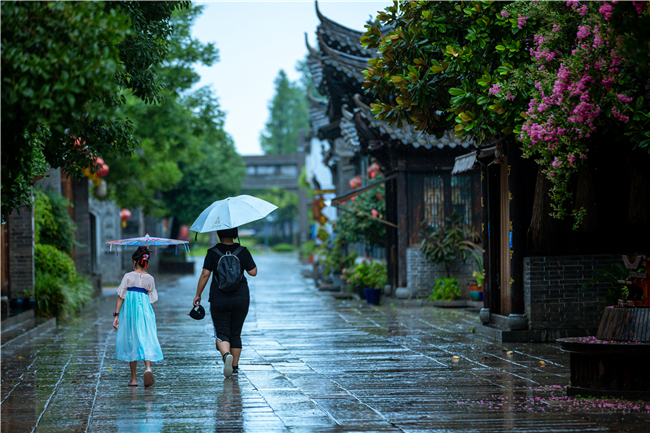水巷汪塘、古街石橋、亭閣樓臺在夜幕下如詩如畫。星星點點的燈光勾勒出不同風格的建筑輪廓,璀璨燈火將古香古色的亭臺樓宇、小橋流水裝扮得絢麗奪目。