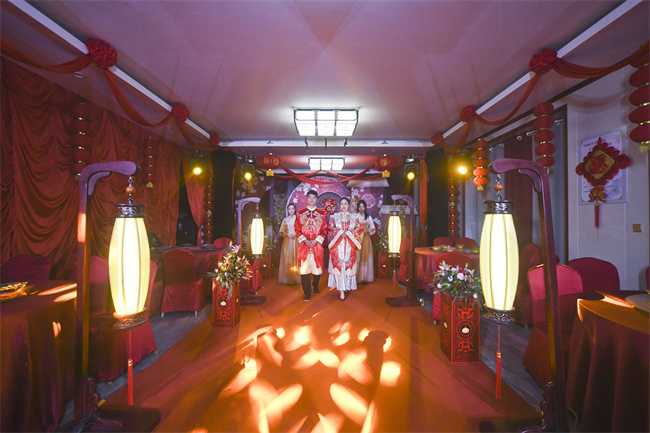 “一對新人喜登華堂”,隨著婚禮司儀的一聲長腔,身著傳統婚服的新郎和新娘走入禮堂,拜天地、拜高堂、夫妻對拜、飲合巹酒,向賓客發喜糖。與以往不同的是,在座賓客都是駐華使節。9月27日,駐華使節齊魯文化行走進曲阜尼山鎮魯源新村,體驗中式傳統婚禮。
