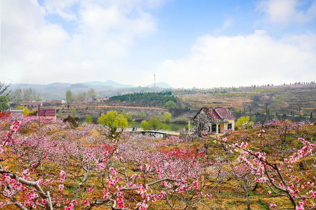 “世外仙境水連天,桃源景色醉人間”,這是陶淵明筆下描寫的“人間桃源”。多年來,以“桃花島”為核心的沂河源田園綜合體用藝術點亮田園,以文化振興鄉村,打造了沂蒙老區的“桃源山居圖”。