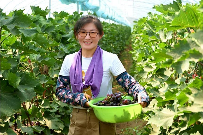眼下,正值大棚葡萄上市的季節,走進山東肥城市老城街道河口村的葡萄大棚里,一串串葡萄掛滿枝頭,顆粒飽滿,果農正在進行采摘,收獲豐收的喜悅。