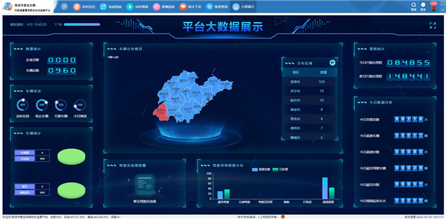 走進菏澤市交警隊,一張大屏映入眼簾,它是營運車輛監控平臺的智慧大腦,將菏澤地區全部營運車輛納入管理,對車輛詳細情況進行詳盡的展示,可以具體到每輛車近一個月的上線數據、運營狀況、告警情況。執法部門可以根據數據統計分析,對車輛進行動態閉環監管,督促營運車輛公司進行整改,降低事故發生機率,保障道路運輸行車安全。