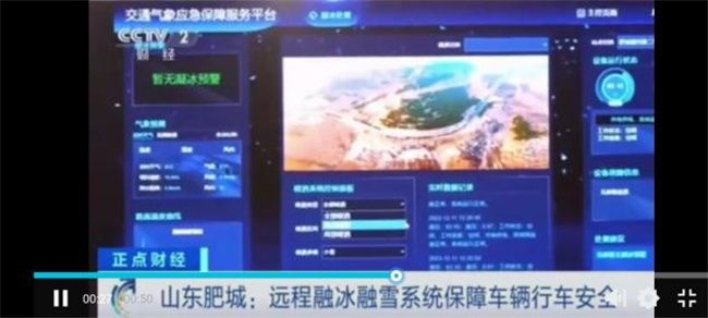 近日,央視《正點財經》節目對山東泰安肥城“遠程融雪融冰”系統,有效保障道路安全暢通,進行了專門采訪報道。