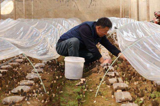 羊肚菌味道鮮美,口感醇厚,能帶給人們獨特的味覺享受,也撐起了農民的致富傘。宋年升 攝