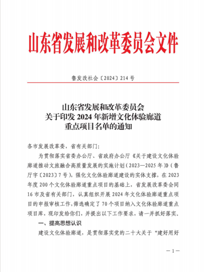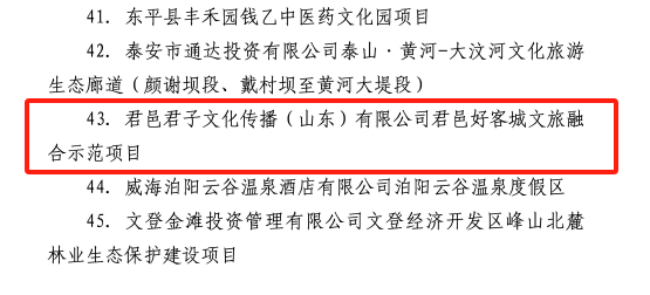 近日,山東省發展和改革委員會公布2024年新增文化體驗廊道重點項目名單。肥城市老城街道君邑君子文化傳播(山東)有限公司君邑好客城文旅融合示范項目成功入選!