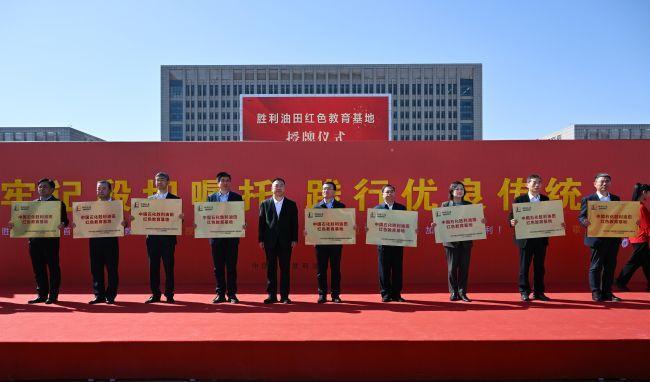 活動儀式上,勝利油田黨委命名公布了華八井、營二井、坨11井、油田優良傳統展廳、“端牢能源飯碗”首倡地、勝利石油科技館、王為民事跡展覽館、孤東會戰紀念地、東營原油庫、六戶采油管理區、青東5灘海陸岸采油平臺、白鷺湖井工廠等首批“勝利油田紅色教育基地”。勝利石油管理局有限公司執行董事、黨委書記,勝利油田分公司代表孫永壯為教育基地授牌。