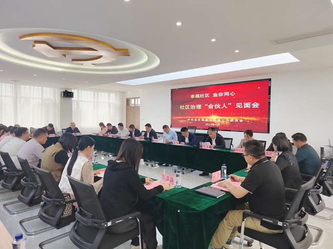 4月19日下午,金鄉縣“幸福社區  魚你同心”社區治理“合伙人”見面會暨集中簽約儀式在魚山街道金源社區黨群服務中心舉行??h委組織部、縣委社會工作部、團縣委、縣總工會、縣婦聯、縣社會治理服務中心、縣房產服務中心、縣社會組織黨委有關負責同志,魚山街道黨工委主要負責同志和分管負責同志、社區治理“合伙人”、各城市社區黨委書記和“兩委”成員參加活動。
