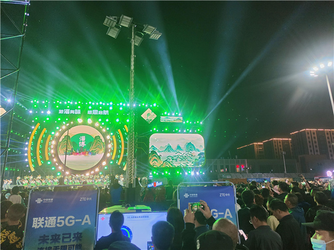 在東側主舞臺場地安裝1臺具有超大規模天線陣列、EIRP可達69dB、OBW 1.6G的超大帶寬5G-A新設備,上下行速率分別可達1Gbps、10.8Gbps,給網紅主播等高速率需求用戶提供高品質的網絡服務,展現了聯通5G新技術在重點場景保障方面超大容量和超高速率的優勢。