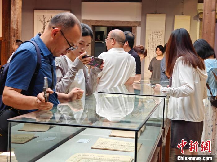 “閩東之光——李若初墨跡及其詩詞書法創作展”在福建省海峽民間藝術館開展,圖為游客、市民正在觀展。葉秋云 攝