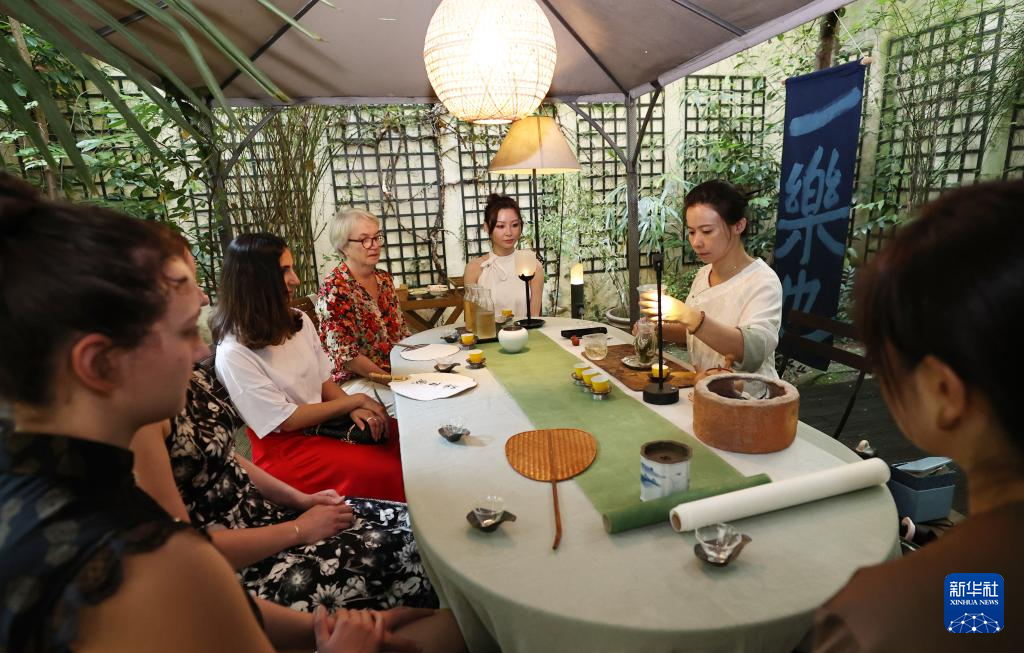 茶藝師張樂2022年在法國巴黎創立了“一樂也”中國茶工作室,每周在充滿中式園林風情的小院里為來自法國、中國、摩洛哥、日本等地的學生上一到兩次茶藝課。此外,她還在當地中小學、文化機構等擔任茶藝教師。張樂表示,通過她的展示和介紹,很多人看到了中國茶的好,愛上了中國茶,還在自己家里置辦了茶桌,和家人分享。談到正在籌備的新茶館時,張樂說:“每個時期的中國茶都有自己的特點,我會保留傳統精髓部分,也會表達一些新的態度,讓法國人看到中國茶更多的可能性?!?/p>