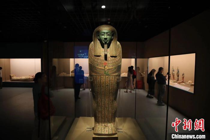 古埃及常與“神秘”相連,本次展覽亦有不少“未解之謎”可以挖掘。例如此間展出的彩繪人形棺有“綠臉”“紅臉”“黃臉”之分,為何選擇不同的顏色繪于面部?記者在展廳里了解到,目前這還是未解之謎;這批新近出土的彩繪木棺,因封存在地下深處,顏色保存完好,圖像和銘文個性鮮明,為埃及棺槨類型學研究提供了珍貴資料。