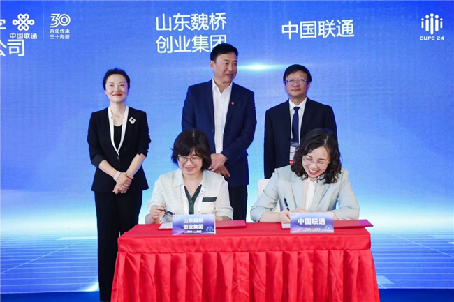 7月19日,在2024中國聯通合作伙伴大會上,中國聯通與山東魏橋創業集團簽署全面戰略合作協議,這標志著雙方將在更高層次、更寬領域、更高水平上開展全面合作。中國聯通政企客戶事業群副總裁梁鵬、山東魏橋創業集團信息中心馬法紅主任代表雙方簽約。