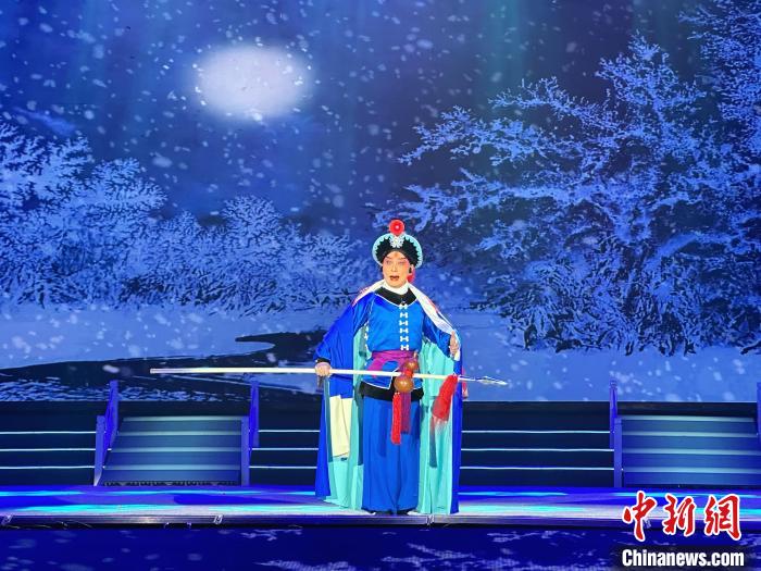 圖為戲曲演員表演京劇《野豬林·大雪飄》。李庭耀 攝