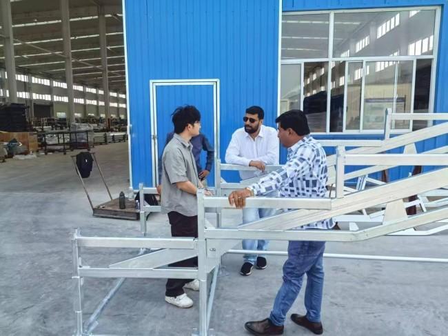 Li Guangjin, Deputy General Manager of Shandong Avant Sport Industrial, provided an overview of the company’s profile and core operations, followed by a guided tour of the spectator stand production line. Sheeraz Khan Mehar Khan remarked that Avant Sport Industrial is a world-class manufacturer of spectator stands, boasting cutting-edge technology and high-quality standards, making it the preferred producer of Xin'anyi metal stands. Subsequently, both parties engaged in discussions regarding project requirements and technical considerations.