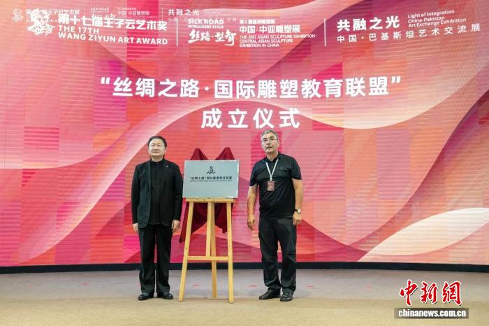 嘉賓為“絲綢之路·國際雕塑教育聯盟”揭牌。主辦方供圖