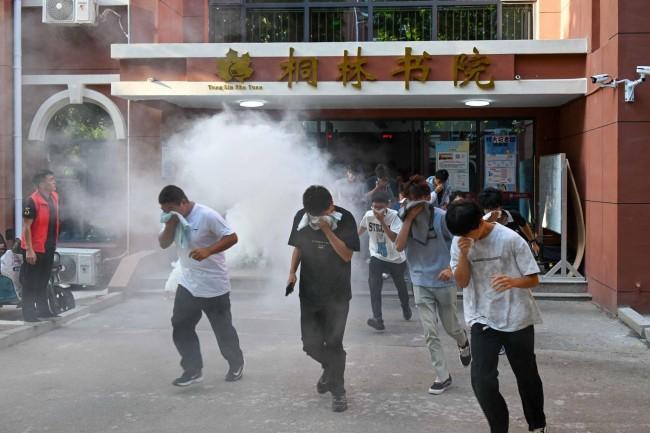 9月25日,安全保衛處聯合各書院開展了新生疏散逃生演練活動。全體大一新生按照演練方案,分別從12棟學生公寓進行緊急疏散,各樓層疏導員指揮同學們用濕毛巾捂住口鼻、彎腰低姿,沿著疏散指示標志和安全出口有序撤離并集合到預定疏散區域。整個演練過程安全、規范、快速、有序,從疏散到集合,平均用時4分鐘。