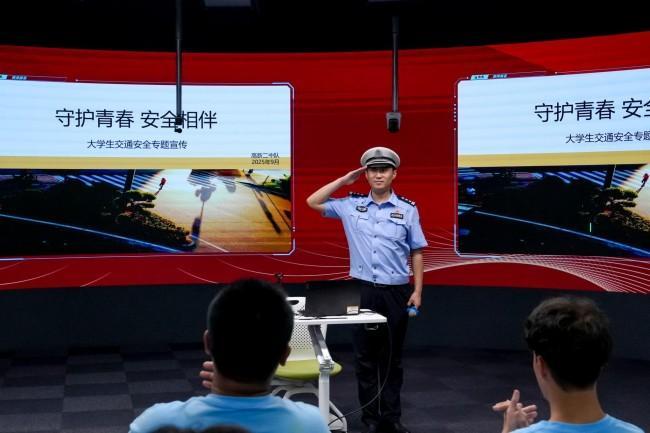 翟羽佳以《守護青春安全相伴》為題,介紹了大學生交通安全現狀,普及了大貨車視野盲區知識,播放了典型事故視頻。強調步行安全要做到“三看二不兩注意”,騎行安全要做到“一盔二證三規范”,乘車安全要做到“三查二系一拒絕”,提醒學生要懂得拒乘黑車,做好“一盔一帶”。他從法律成本、經濟成本、職場成本、時間成本、家庭成本等方面分析了酒駕醉駕的代價,讓大家受到警示和教育。他指出,交通安全無小事,希望同學們牢記交通法規,自覺抵制危險行為。