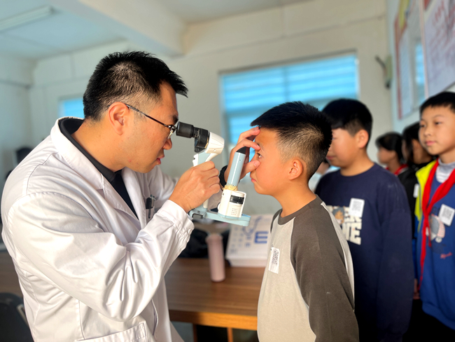 作為此次活動的核心執行力量,聊城九三學社社員、聊城華廈眼科醫院業務院長張強帶領醫院專業眼科團隊,帶著精密的檢查設備,為同學們開展了全方位的眼部檢查。篩查項目涵蓋視力檢測、眼表前節檢查、屈光狀態評估、眼位檢查及眼底檢查等,全面排查青少年近視、遠視、散光、斜視等常見眼部問題,為每一名學生建立詳細的視力健康檔案,精準掌握孩子們的眼部健康狀況。