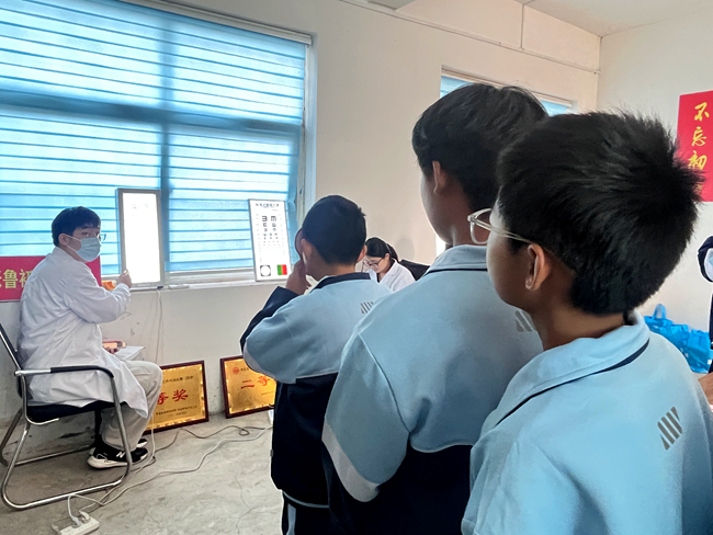 在篩查的同時,團隊成員結合青少年用眼習慣與眼部發育特點,用通俗易懂的語言,圍繞“如何科學愛眼護眼”“近視的預防與控制”“斜弱視及低視力的早期干預”“高度近視的危害與防護”以及激光近視矯正等熱點問題,向師生們進行了講解。同時,針對學生們日常學習中存在的不良用眼姿勢、過度使用電子產品等問題,現場給出了具體的矯正建議和實用技巧,引導孩子們養成良好的用眼習慣,從源頭預防近視發生。