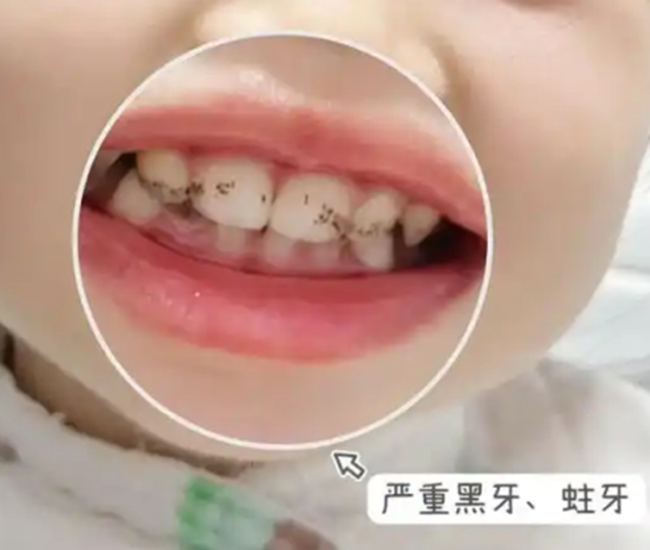 乳牙齲齒會導致牙洞形成,這些齲洞里容易積聚食物殘渣和細菌,使得寶寶6歲換牙時新生的恒牙也發生齲齒。