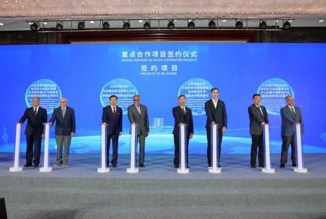 開幕式上,涵蓋高端裝備、現代海洋、智慧農業、AI+動物疫苗等前沿領域的8項國際合作協議順利簽署。山東科技大學、山東省濱州畜牧獸醫研究院、山東省科學院自動化研究所等高校及科研院所與伊朗伊斯法罕理工大學、俄羅斯圣彼得堡國立海洋技術大學、加拿大健康科學院、埃及國家研究中心農業與生物研究所、西班牙格拉納達大學、吉爾吉斯斯坦總統直屬國家科學院、德國康斯特大學海洋實驗室、英國皇家農業大學先后簽署人才培養、科技合作協議。
