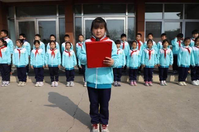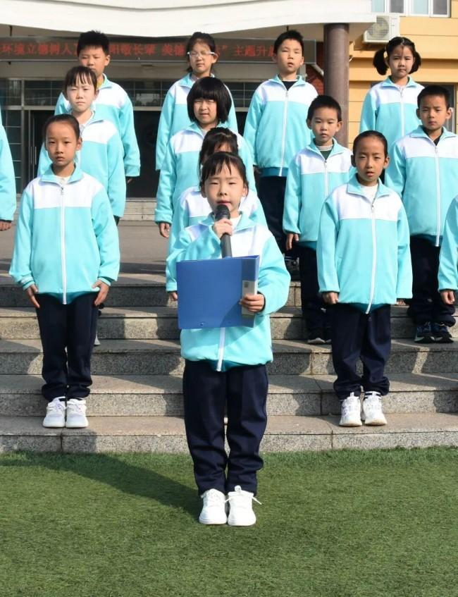 伴隨著激昂的《義勇軍進行曲》,五星紅旗冉冉升起,全體師生肅立注目,向國旗行少先隊隊禮,嘹亮的歌聲中滿含對祖國的崇敬與熱愛。