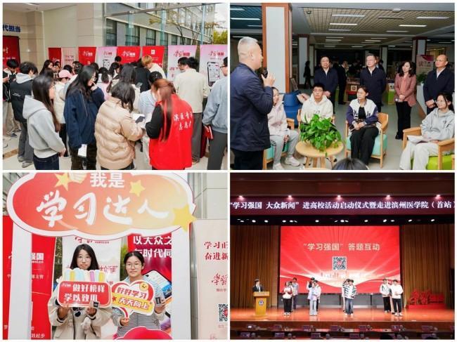 10月30日,山東省“學習強國大眾新聞”進高?;顒訂觾x式暨走進濱州醫學院(首站)活動成功舉辦。中宣部宣傳輿情研究中心黨委書記、主任、“學習強國”學習平臺總編輯農濤,中宣部宣傳輿情研究中心學習管理部主任裴珍珍,山東省宣傳輿情研究中心主任田野,大眾報業集團(大眾日報社)黨委常委、副總編輯劉洪昌出席活動。煙臺市委常委、宣傳部部長呂波,濱州醫學院黨委書記孫祥軍參加活動并致辭。省屬駐煙高校、市屬高校宣傳部負責人以及濱州醫學院師生代表共同參加啟動儀式。