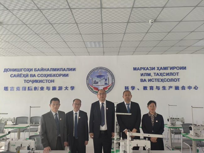 代表團訪問塔吉克國際旅游與創業大學,實地參觀該校教室、餐廳、校辦工廠及創業孵化中心,受到師生的熱烈歡迎。與副校長賈博羅夫?法圖洛(JABBOROV FATHULLO)洽談教師互訪、學生交換、實訓基地共建等事宜,搭建海外深造平臺。
