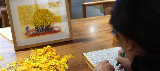 文創店工作人員孫明蓮表示:“我們這棵銀杏樹的文創作品是經過染紙,不掉色不褪色。下一步是刻出來的,在做的過程中,每道工序都得經過認真耐心地創作出來,才能讓這棵樹,讓游客們感到非常地光鮮亮麗?!?/p>