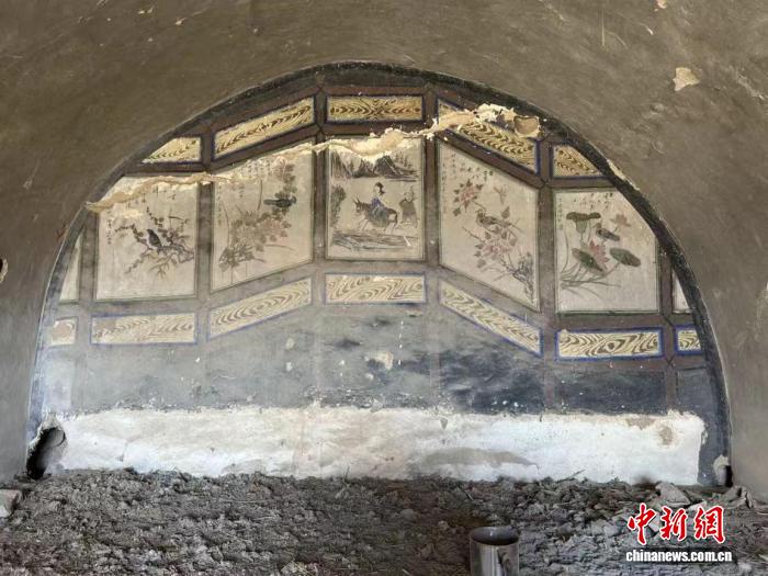 山西省運城市鹽湖區馬家溝瘟神廟東窯壁的《花鳥人物圖》。(山西省運城市鹽湖區文物保護中心 供圖)