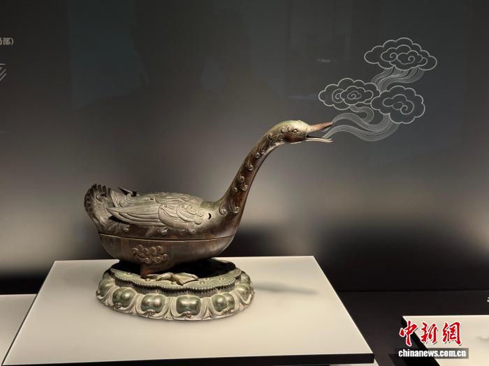 11月11日,大都會藝術博物館藏明代雁形銅熏爐在上海博物館東館展出。中新社記者康玉湛攝