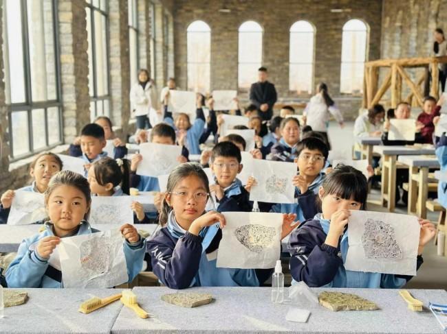 活動中,大家在專業老師的指導下體驗拓印技藝,從工具使用到手法技巧,一步步解鎖非遺技藝的奧秘,親手將燕子石上的古生物紋路清晰復刻,感受傳統工藝與自然遺產的巧妙融合。體驗結束后,孩子們前往山野間開啟燕子石尋覓之旅,在山石間仔細探尋,親手挖掘屬于自己的燕子石,沉浸式感受大自然的神奇饋贈,最終帶著滿載的收獲與喜悅返程。