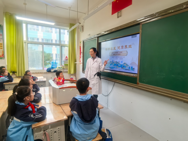 課程的中醫特色環節贏得了同學們的熱烈響應。賈燕燕結合中醫理論,現場示范講解了大椎穴、曲池穴的準確位置及退熱功效。通過手把手指導、趣味問答等互動方式,讓孩子們在親身參與中感受中醫穴位療法的神奇魅力。同學們不僅學會了簡單的應急退熱技巧,更激發了對傳統中醫文化的濃厚興趣。