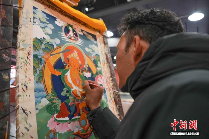 圖為西藏鄉村振興產品展示中心內的唐卡繪制體驗區。貢確攝